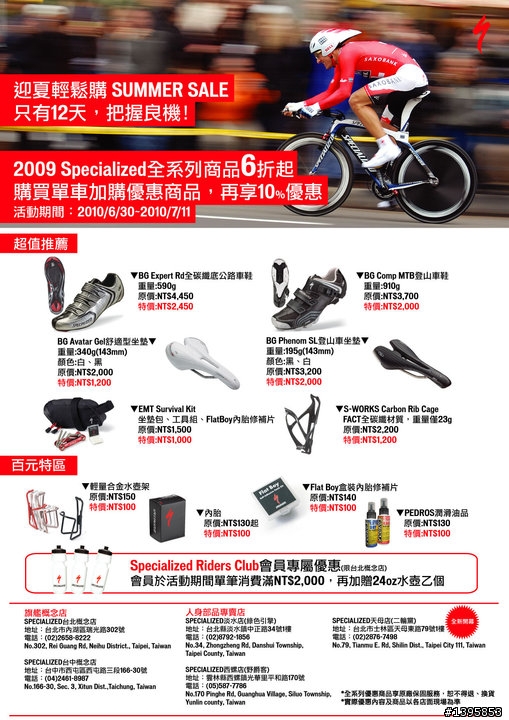 短指手套、袖套、腿套任選一件75折任選兩件,兩件都7折任選三件,三件都65折我比較想要~車隊板手套~NALINI的手套個牌子都有-----------------------------------------------------另外參加自行車協會辦的環雲林自行車大賽的女車友奇蹟沒有眷顧到妳...願~祝您一路好走,也祝您在天堂能夠平安快樂的騎車