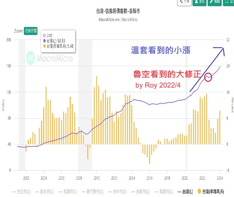 剛剛問AI,等房價跌的人要再繼續租屋等等了............--關鍵趨勢分析,從這個對照表可以看出三個重點:經濟好,房價必漲(2010、2021、2025): 只要 GDP 成長率衝高(超過 6%),當年度或隔年的房價指數都會有顯著的漲幅。如果 2025 年 GDP 真的如圖中預測達到 7.37%,這對房市是非常強勁的基本面支撐。經濟差,房價未必跌(2023): 請看 2023 年,經濟成長率只有 1.08%,是近年最差的一年,但房價指數從 140 漲到 150。這顯示房價有「抗跌性」,經濟不好時它只是漲得慢一點,不一定會跌。2025 的展望: 雖然目前有央行打房政策,但面對 15年來最好的經濟成長預測 (7.37%),市場資金會非常充沛。歷史經驗告訴我們,在這種經濟過熱的年份,房價很難看到明顯回檔。