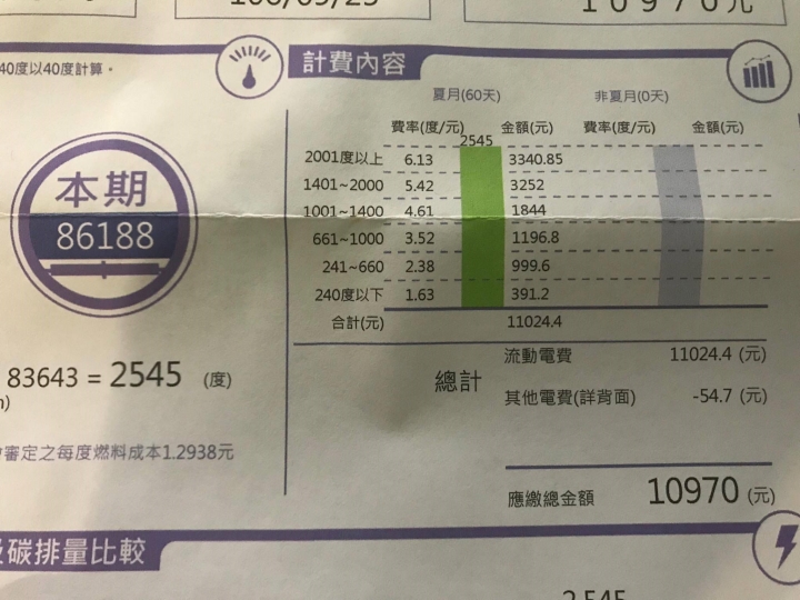 9.電費一度5元無獨立電表,一棟6戶,每次收電費都是他自己手寫貼在門上,我都很信任他寫多少就多少直接匯款。他也賺了不少吧?