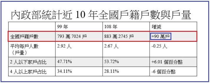 人口怎麼了?回文前請先爬文好嗎?全國戶數10年來增90萬戶。
