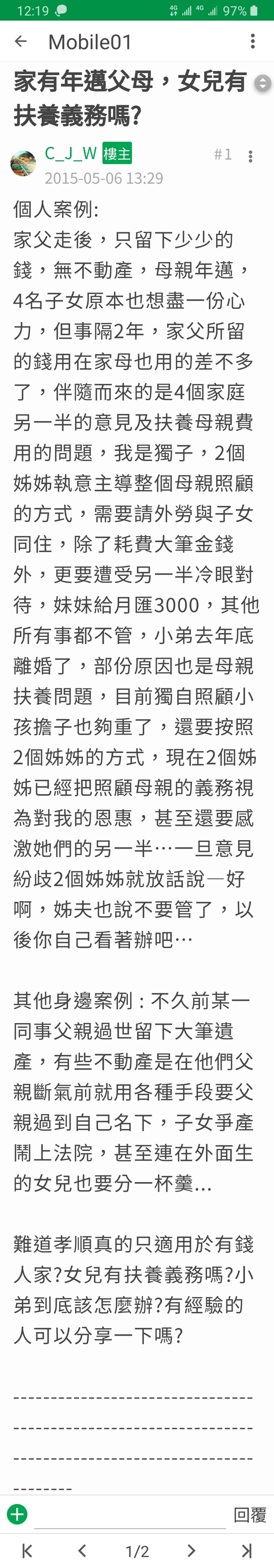 只是個過程 wrote:C_J_W你也是. (恕刪) 你太壞了,還把人家的過去翻出來說嘴⋯⋯C_J_W確實很多事情都建立在「有錢」的基礎上,所以我都不斷教育我的小孩金錢的重要性。當然,「孝順」是要花錢跟時間經營的,我爸、我媽、我後媽,還有我後媽的兒子都是我在養著……..現代社會有一種父母,他們不但不會給小孩子資源,反而是養大小孩後不斷要「孝親費」………