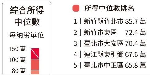 統計數據比較客觀比較準的是 "中位數".平均數就比較像網友說的, 郭台銘和窮房套, 兩人財產平均1000億的概念.竹北市所得中位數, 遙遙領先台灣其他首善地區.贏台北市大安區將近22%這是什麼概念?也就是如果一般民眾在台北市收入最高的大安區, 假設所得月領5萬,到了竹北市, 儘管開一個月6萬, 老闆還覺得你便宜.過程哥昨天一早約朋友在台北爬山, 在台北市開個車覺得那街道實在是........好像被老窮包圍.