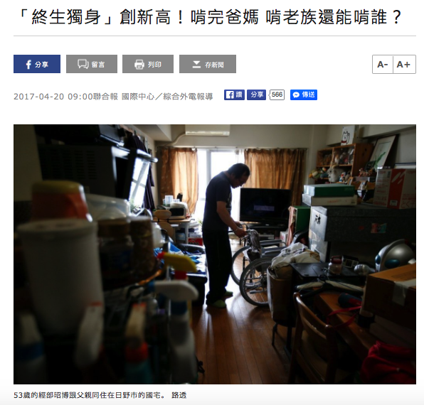 威力江 wrote:看了新聞才發現原來東(恕刪) 日本20年前開始出現年輕人選擇在家裡白吃白喝的啃老現象人稱「啃老族」的日本單身寄生族世代如今步入中年不知道父母撒手人寰、金援斷絕後,日子該怎麼活下去.......35~54歲啃老 日本有450萬人