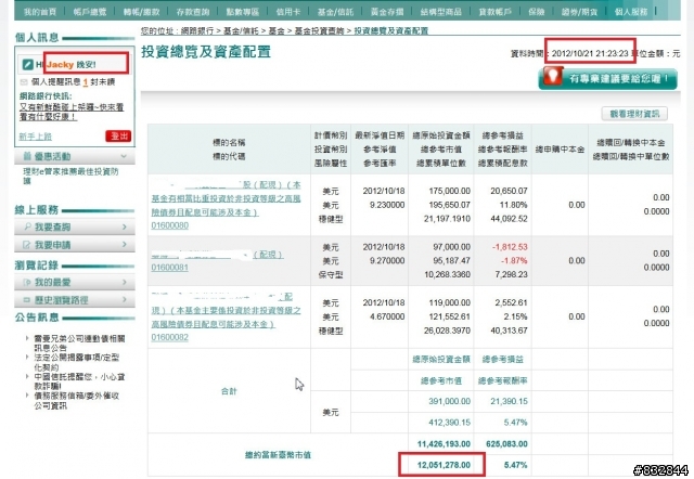 yeats1983 wrote:大家也不要一直打樓主都是出來混口飯吃的,不然等一下ATM又要被砸了~...(恕刪) 您的職業是徵信社嗎?於房產討論區不關心房產主題,只關心誰是房仲...我的年紀不能當第一線房仲業務了,也不用砸ATM偷錢,下面的圖是我網銀基金和部分存款的數字,別說我盜用別人資料,圖內登入時間為今天21:23和21:39,就是剛剛