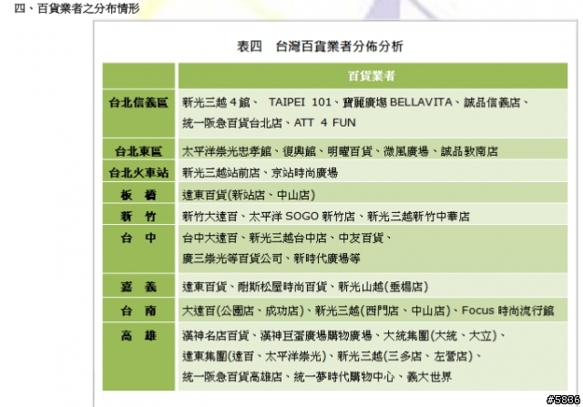 所以這份資料,個人認為大部分數據應該是從媒體報導中收集整合起來的.不過如前面所提,很多數據都是推測出來的不然就如某位大大提到的都是百貨在喊爽的.大家如果有興趣可以去注意,有時候不同家媒體報導同一家百貨的業績數據就有差異,或者同一家媒體在不同時間點(例如周年慶前後)報導某家百貨公司前一年的業績作參考時卻不一樣.