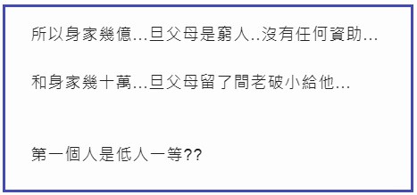 所以身家幾億...旦父母是窮人..沒有任何資助...