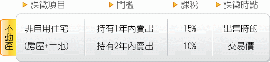 →課稅的要件那管你是一個月或十年也罷,現行不動產因買賣移轉時買方則必需被課徵