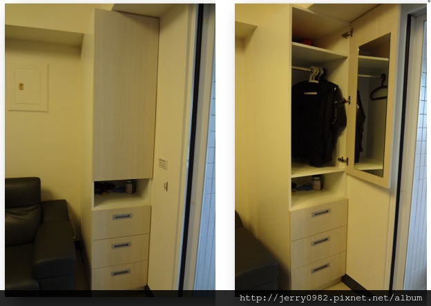 右邊是DIY的收納櫃,連常用4個大行李箱都可以收納,