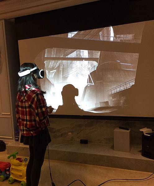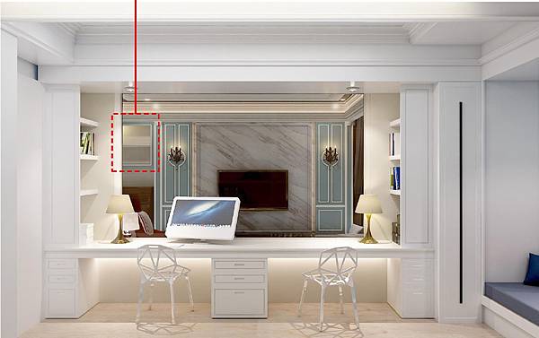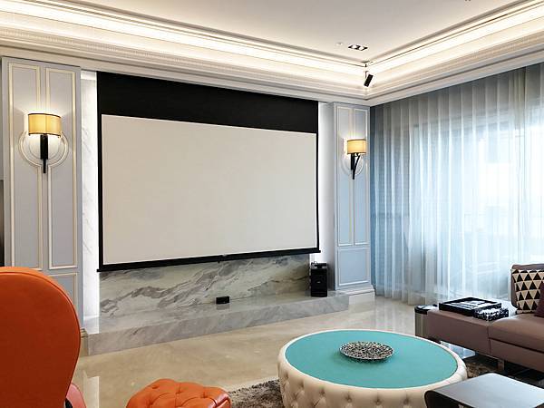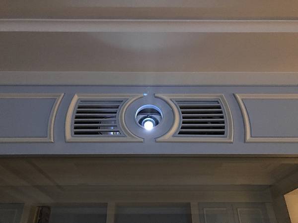 原本設計師規劃投影機是從書房投影出去(玻璃上挖一個洞)