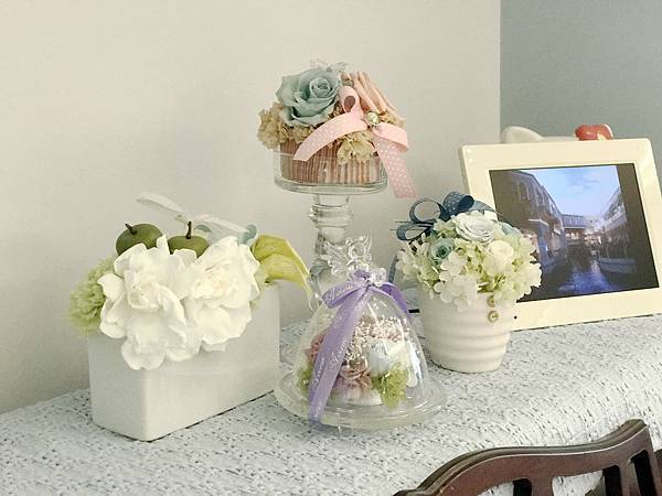 這裡也有擺放為了我們藍色的新家親手插的永生花
