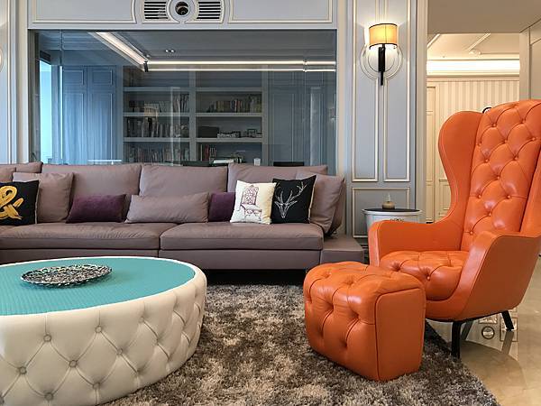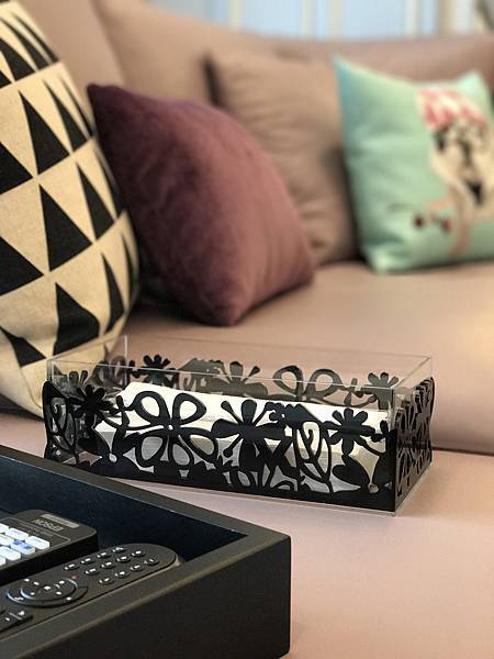 剛好跟玄關烤漆玻璃的大馬士革圖騰呼應