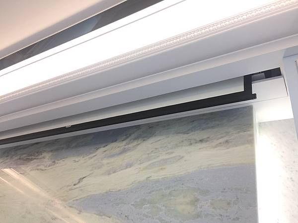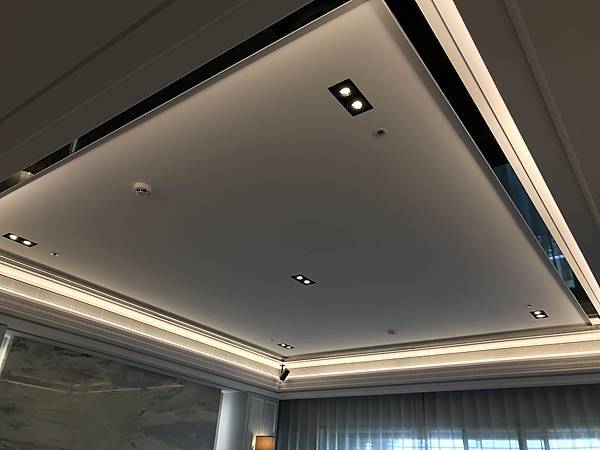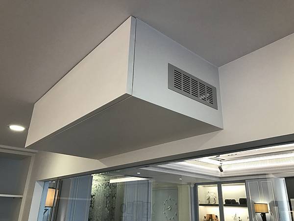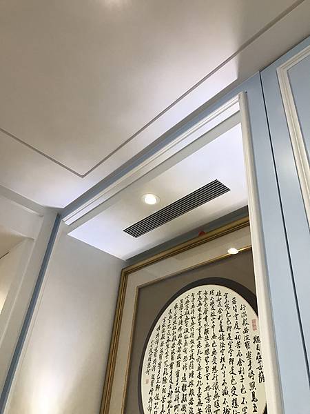 滿酷的是我們設計師用整圈的百頁出風口設計間接照明