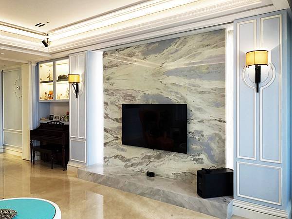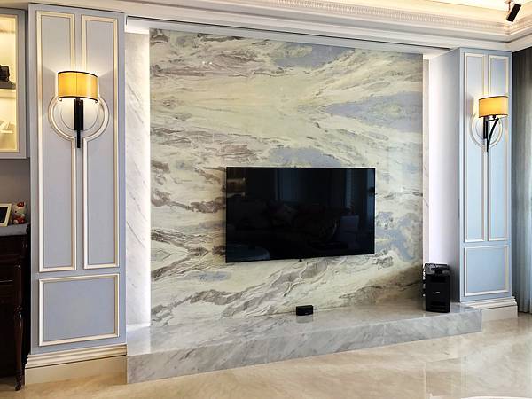 這片電視牆,是我們跟做石材的朋友一起去逛石頭的時候看見的