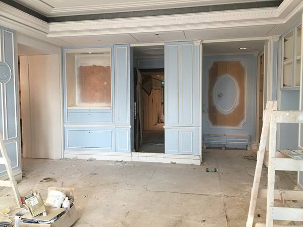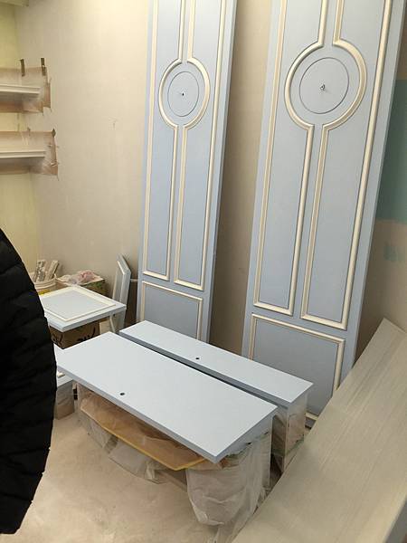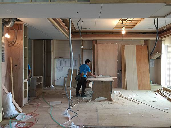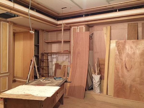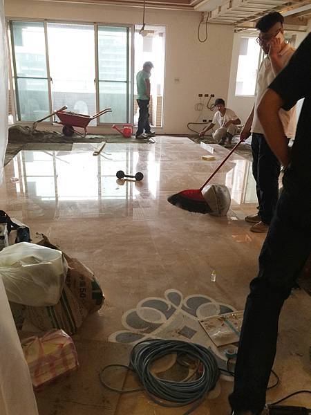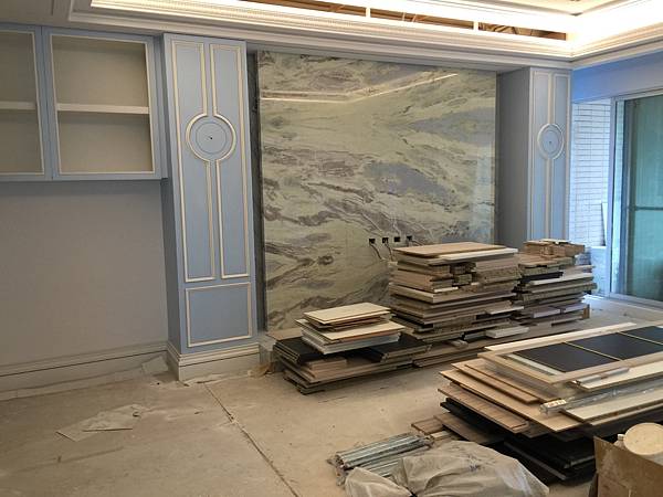 因為我們的施工工法是先鋪大理石再做木座,所以地板要先保護起來