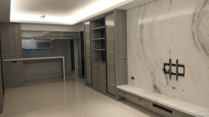 3.雪白玉或是蒂諾大理石電視牆(高280*寬210),如果預算有多可以換銀狐大理石。(最下面為示意圖)
