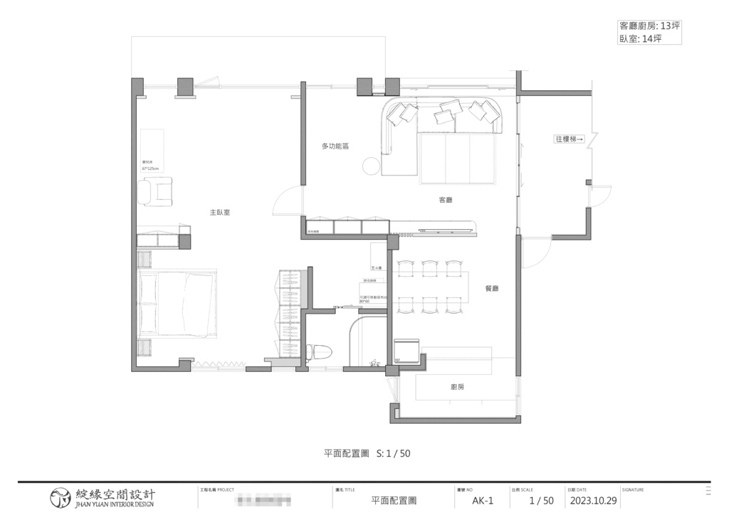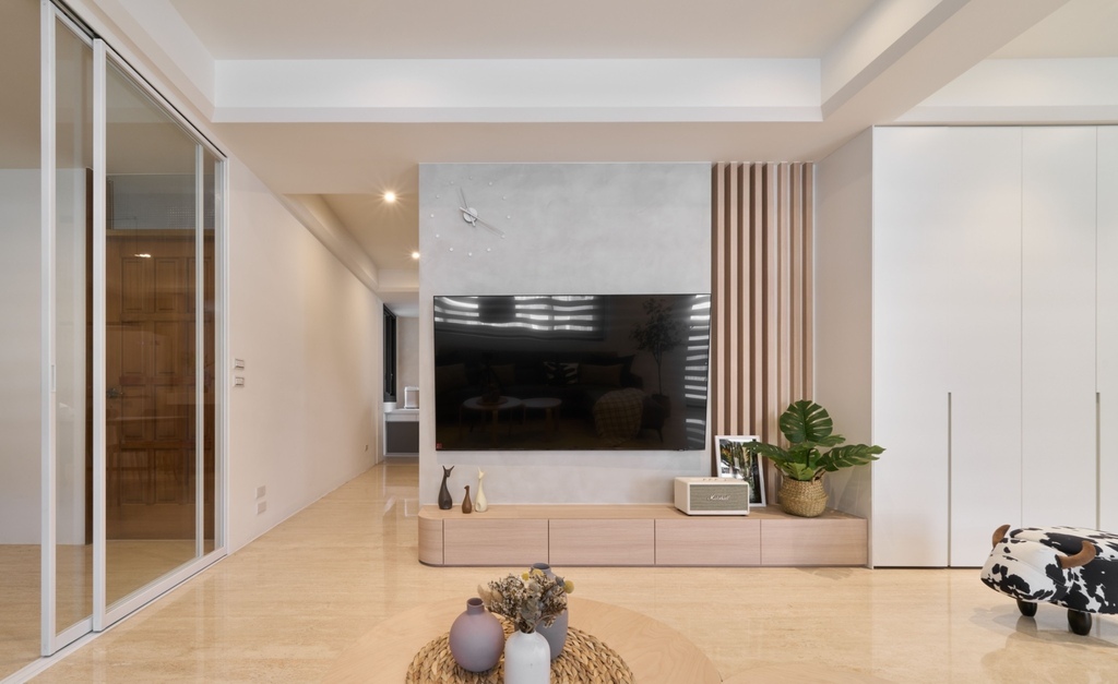 這次重新翻修做了一房兩廳一廚一衛,因為要趕在小孩出生前完工還要散味道,設計公司也很積極追進度,從場勘、溝通設計需求、畫稿修稿到定稿,從討論到開工花了3個月。