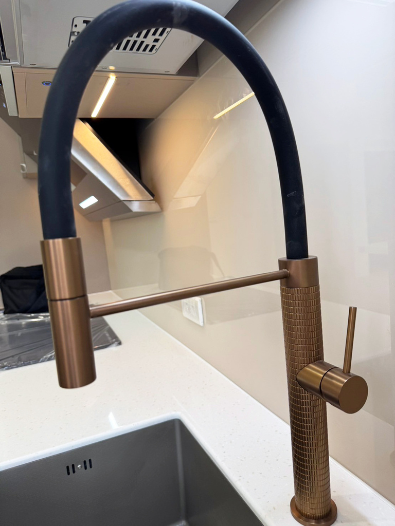 ▼伸縮式水龍頭,可以拿起來沖洗,清洗水槽的每個角落會變得輕鬆許多。