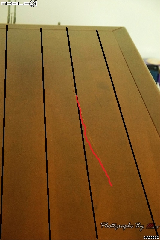淡水風 wrote:Z大你好最近我剛買不...(恕刪) 小弟是覺得可能是從拼接的位置,因為桌面伸縮引起的!!這是可以完全維修好的,只是可能伸縮的框可能吃到膠,造成桌面中板無法伸縮而從圖中的位置做伸縮造成裂紋!黑色是拼接的位置大約畫一下拼接線的位置(小弟大約從圖中看的拼接線)紅色是因為伸縮裂的位置!!