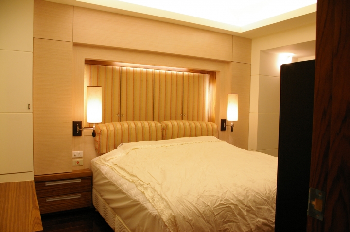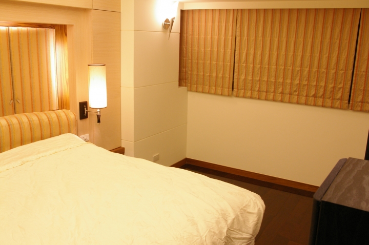 2.主臥床頭上樑,原屋主是自上做了個圓弧狀板子把樑修掉了,倒是大大堤的方式將跟廠商討論一下