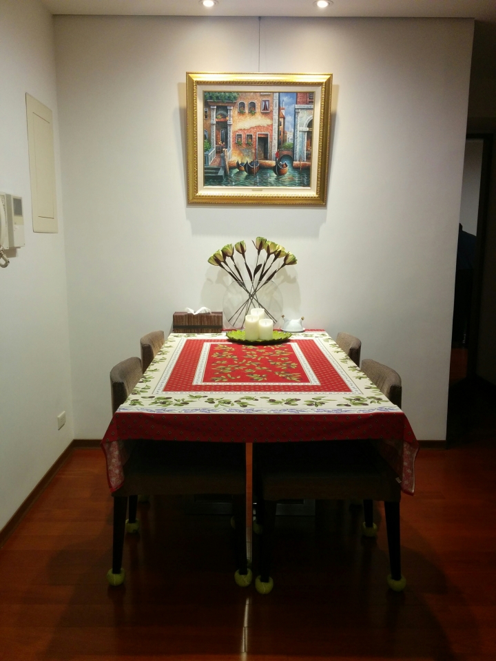 餐廳是我家利用率最高的空間除了吃飯先生組裝電腦、做實驗、修電器和看書都在餐桌上我做串珠、組模型、褶紙、烘焙、包水餃等也都在餐桌上朋友來訪,也是坐餐桌上喝茶吃點心聊天客廳反而少用,也很少看電視家裡只有4口人,餐桌只有165*90公分但只要在桌尾加一張55*90公分的折疊桌舖上長桌巾,就變身成220*90公分的長桌最多曾設宴款待過10個人呢!