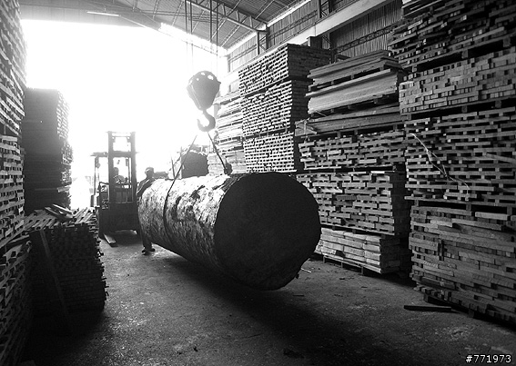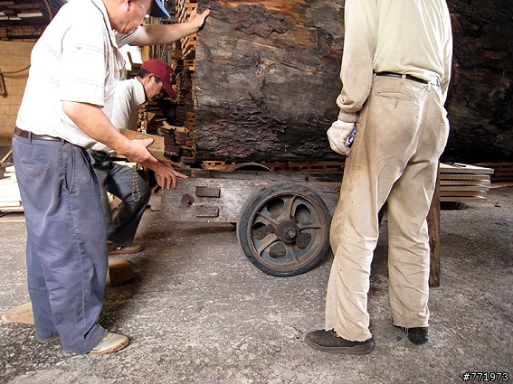 也可以把原木頭端放在台車上,尾端由堆高機推著走....