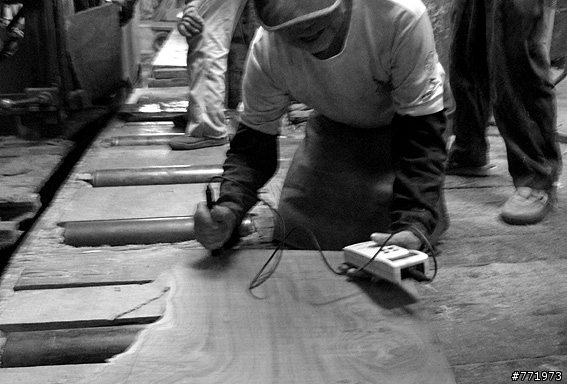 春天才伐倒的阿拉斯加雲杉(頭段),剖開來後.....果然是新鮮的材質好!!
