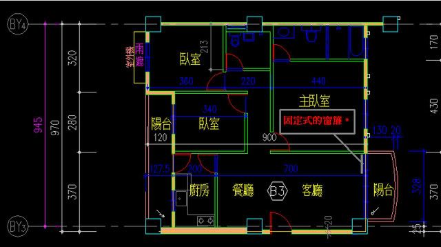 所以你的圖中, 前落地窗-->(正對)-->廚房門-->(正對)-->後門, 中間沒有"不透明""固定"的遮蔽物