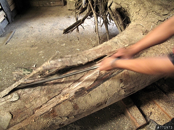 【0928 - 櫸、樟製材】幫01的網兄製材....沒想過有醬的機會 一早卡車就來了私人造林木分段徒手剝砍伐後陰乾一年,材蟲極少....不到10隻樹頭也給它切一下釘拔剝漂亮!!新鮮材的樣子,19%也低 → 搬起來很輕鬆之後放在鐵皮屋裡自然乾,就可以達到製作標準(白天日曬鐵皮屋,室度升高)生長時做過剪枝....預留比較長,讓傷口乾縮 (樹皮無法再完全包覆)日後這部份殘枝的白邊風化掉、心材耐朽....就變成這個模樣好長的一段正樟香氣醇厚樟樹皮樹頭可轉作屏風、、根飾、茶几腳.....等栽植地的土質櫸樹的鬚根.....一整個就是很耐旱的樣子土場堆置時附生的......不知名的蛹or卵鞘??