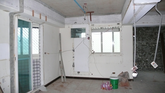 較好說明上一篇說到的吧台,規劃之後會跟客浴的牆壁切齊,原本那空間應該是