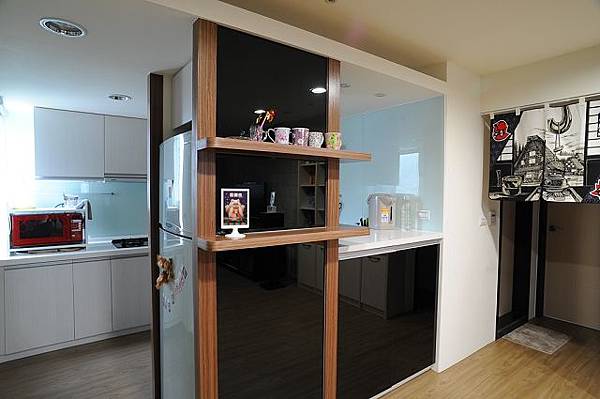 、右邊則是開放式層板,放一些洗碗用品(好像沒拍到這邊),面客廳這邊則是