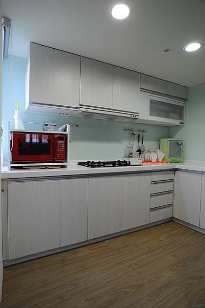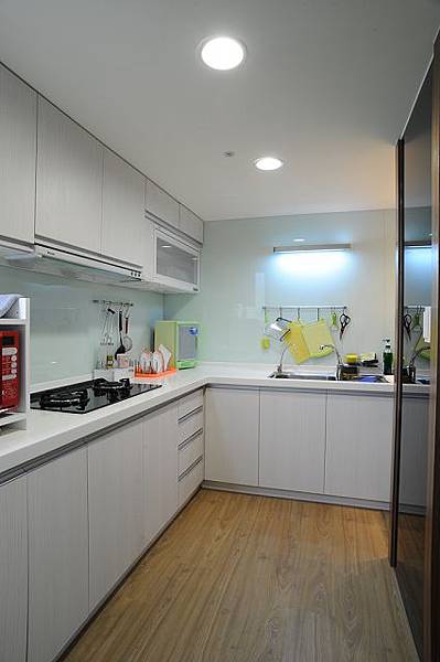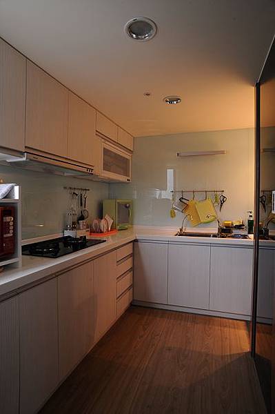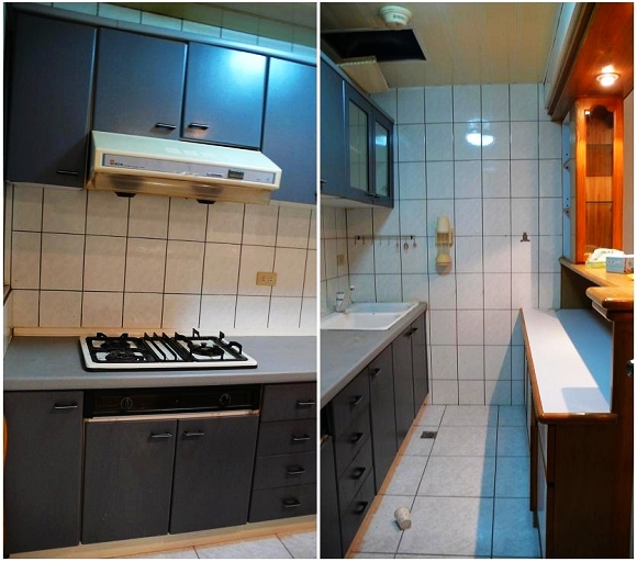 二十年前可能還不流行烘碗機,這個一字型廚房只備有二機而已,但是有不太實