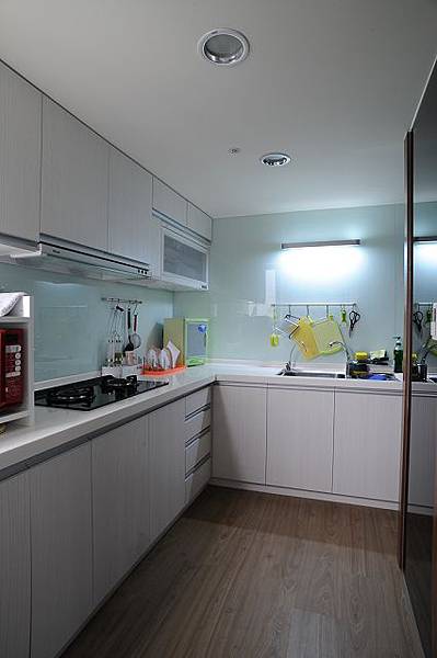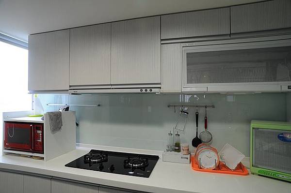 璃,能想到的牆面全貼上玻璃了,使用完廚房後只要順手用乾、濕抹布擦過,就