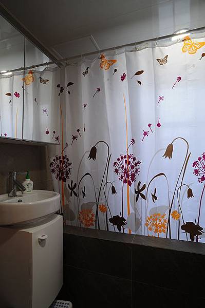 們改成浴簾,也是有乾濕分離的效果在。(重點是也更便宜)