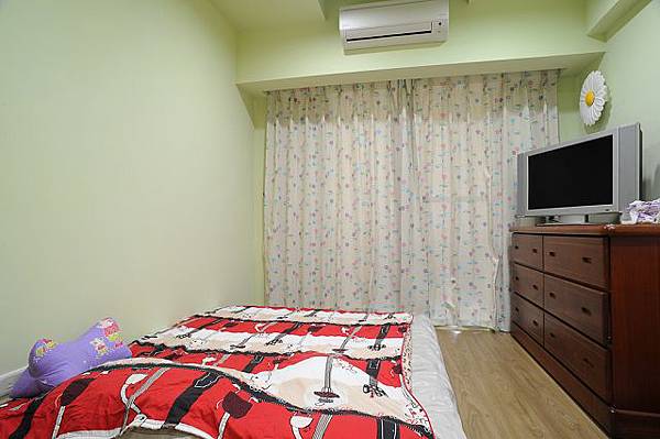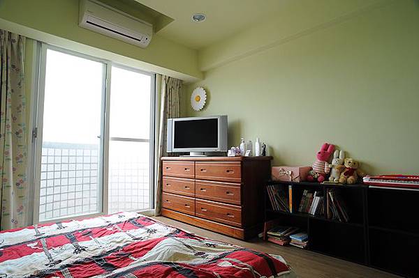 先介紹我女兒小薇的房間(雖然現在是我老公在睡的),六斗櫃、矮書櫃、電視