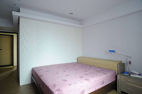 選擇側牆貼壁紙是為了不想跟大家一樣,都將壁紙貼在床頭牆面,這張是加大的