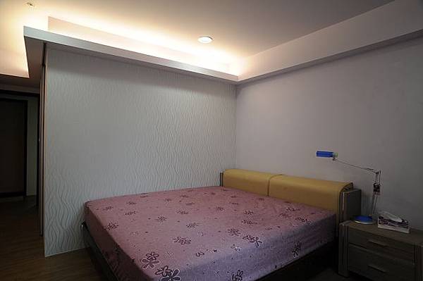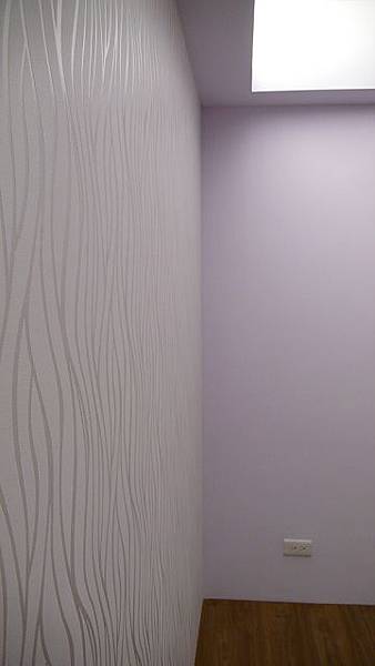 將主臥室廁所打掉,改成更衣室,更衣室牆面顏色跟主臥室顏色一致是漂浮紫。
