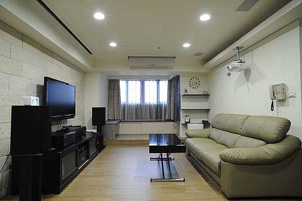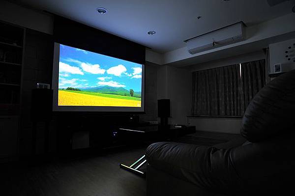 客廳選擇了有 99.9% 遮光效果的窗簾,果真不壞,更有電影院的 Fu 了。