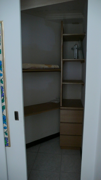 裡頭原屋主已經有做一些層板跟抽屜可以使用,以後電風扇跟暖風機塞進來也沒