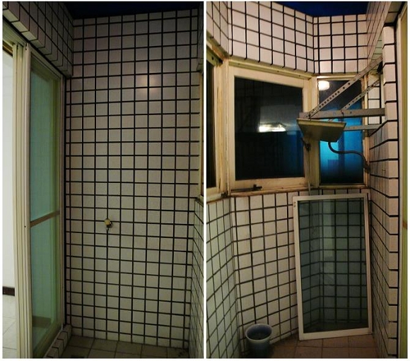 不過這後陽台也有裝設窗戶,颱風來時關起來,雨水不會潑進來,老公不用洗陽