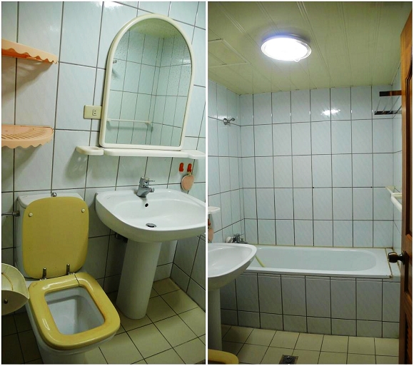 有兩個衛浴,主臥那個有浴缸,客浴則是淋浴的,共同點是空間都很小,都是寬
