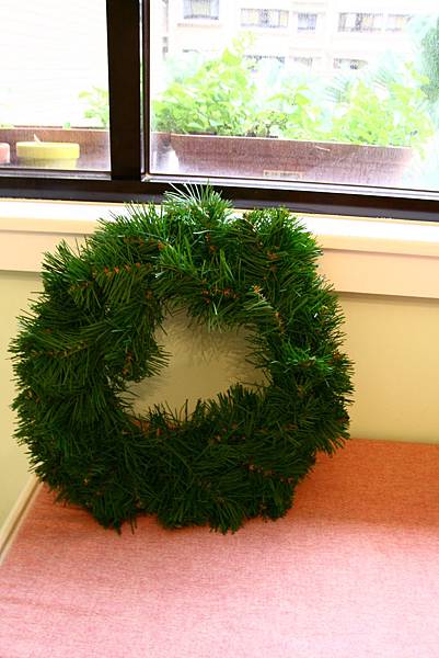 果然沒錯,店面口已經掛滿了聖誔花圈,我挑了一個素的,打算自己來裝飾。一個才89元。