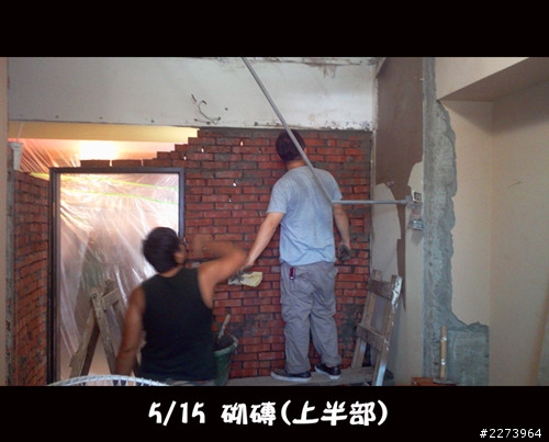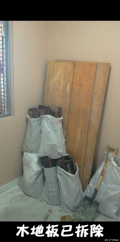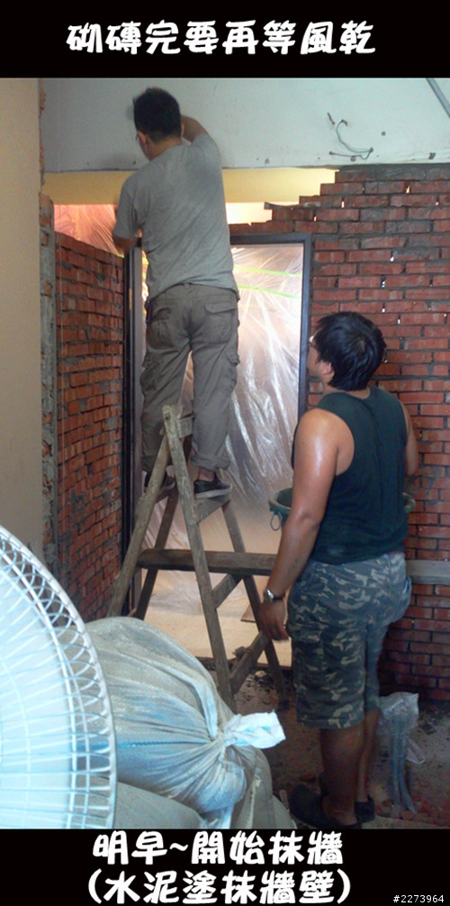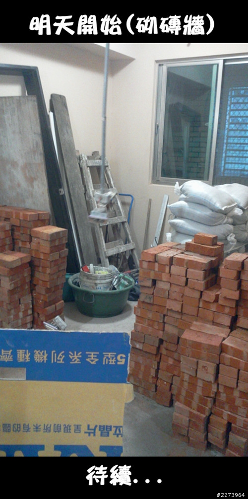 另一師傅繼續敲未完成的木地板另一位清理運走...廢棄物下午(沙&水泥&磚&地磚)都送來明天師傅開始砌磚牆...(先一半高度)師傅說:磚牆一開始只能先砌一半高度等1~2天風乾後再繼續疊高不然貪快整面磚牆會倒塌等牆壁OK再鋪地磚....待續...