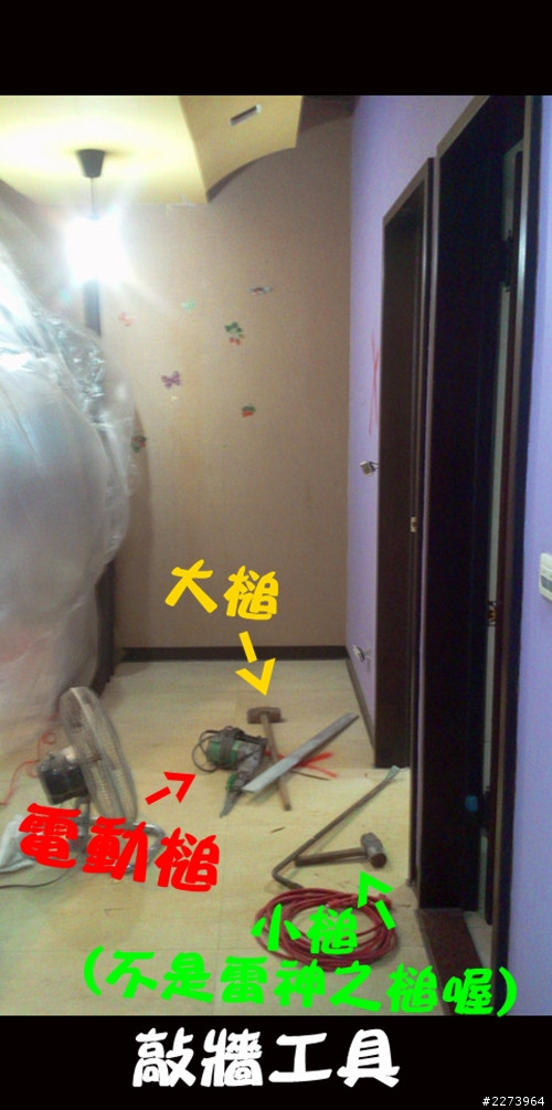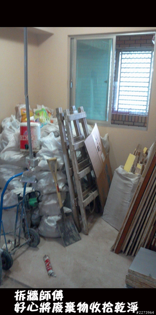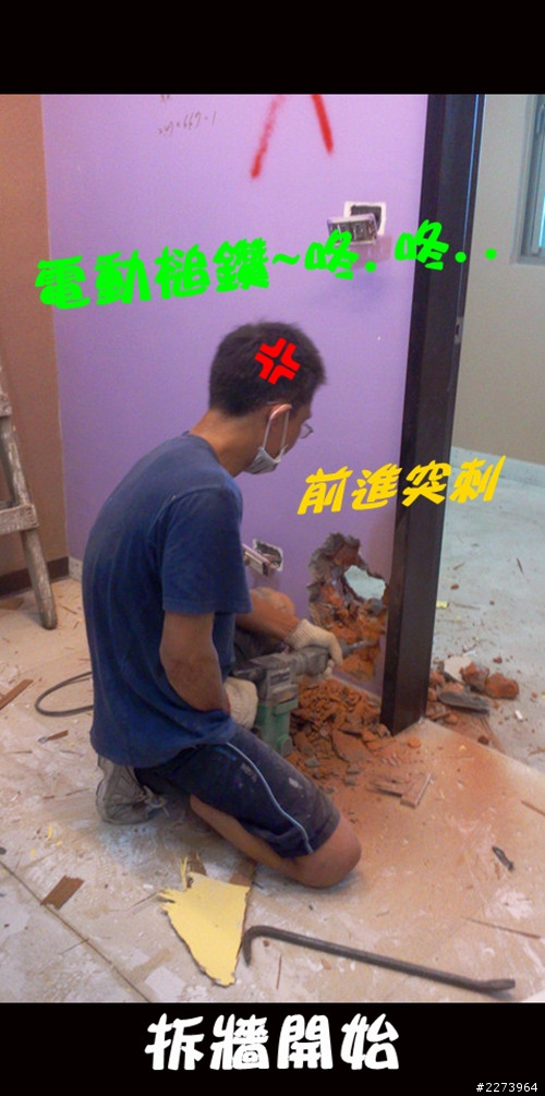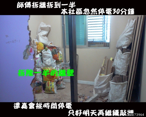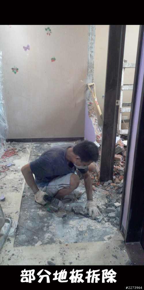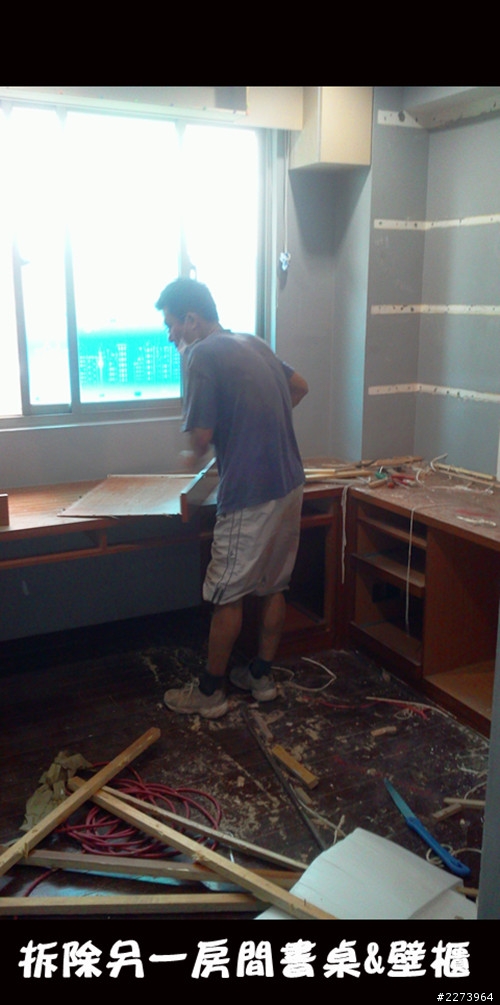 5/9 開工 拆除開始....我是整修2間房間A房:拆除木地板&壁櫃&書桌(重新鋪地磚)B房:拆除水泥隔間牆(外移重新砌牆)&拆除木地板(重新鋪木紋地磚)&訂做新壁櫃&電線插座移動...等等(清運費&等等雜項...一筆不少摳摳)是請網路評價不錯的(師傅)來現場估價...所以每戶價格不一定不過價格還蠻實在的(畢竟他們是做口碑)Q比伍長 wrote: