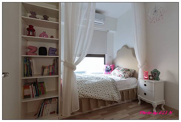 女孩房..小女生喜歡夢幻公主的風格...本來要把牆壁漆成粉紅色...但怕小孩長大不喜歡...