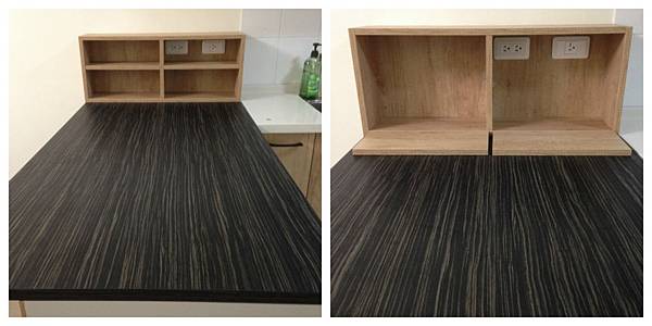 而設計師也多替我們做了一個80公分寬的2層小型置物櫃,層板還可以調整或是取下,依照需求的不同,調整性非常高。