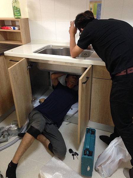 ※ 由於我們是小公寓,沒電梯,師傅決定在工廠先裁切好,打磨好,直接整組含流理臺組好後,直接一人扛上來 (在此真的對師傅們感到敬佩)