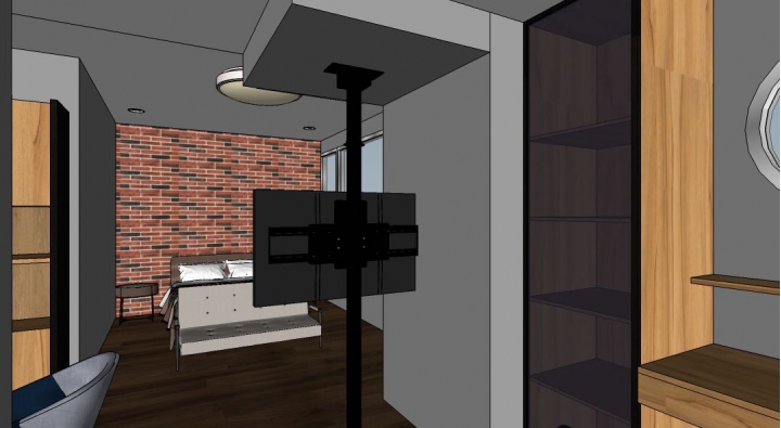 最近因為房間要擴大,所以把原有的裝潢全部要重新設計,目前房間內一人使用,但未來會結婚生子,所以裝潢目前設定全部都不會釘死,未來還可以有移動改變的空間。目前房間設計希望是以輕工業風格,為設計概念!但因為個人對於裝潢設計不太了解,也是第一次裝潢,所以有很多的不懂,想請各位給點建議! 目前不知道房間內的整體顏色設計,因為不想要太黑暗的房間,又想要有工業風的元素,想請教各位在裝潢上的傢俱及牆壁上的顏色,該如何搭配?這是平面圖4D立體圖電視部位有可能會改成這樣的設計想請教各位在顏色上或是裝潢傢俱上有沒有更好的建議,麻煩各位不吝嗇的給點建議,謝謝。
