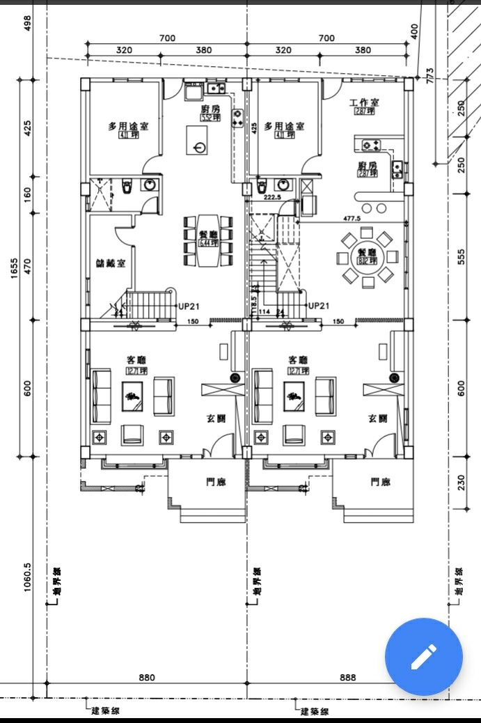 jlwul wrote:這基地夠大很漂亮,須要蓋那麼滿?人口數多? 同意,房子不是大就好,看到幾個問題:1.廚房配置不良,電器櫃與冰箱離工作區太遠,檯面空間不足。2.廁所沒對外窗,沒自然採光,未來管線維修困難。3.大部分窗戶都緊貼外牆,未來勢必得搭雨遮,破壞美觀。如果是我會選擇蓋兩棟小一點的獨棟透天,依照日照條件,兩棟前後可略為錯開。