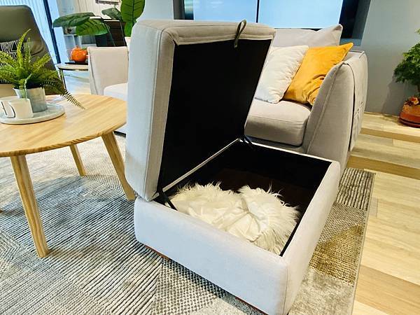而腳凳兼具收納功能,把手處還有可拆卸式收納袋,