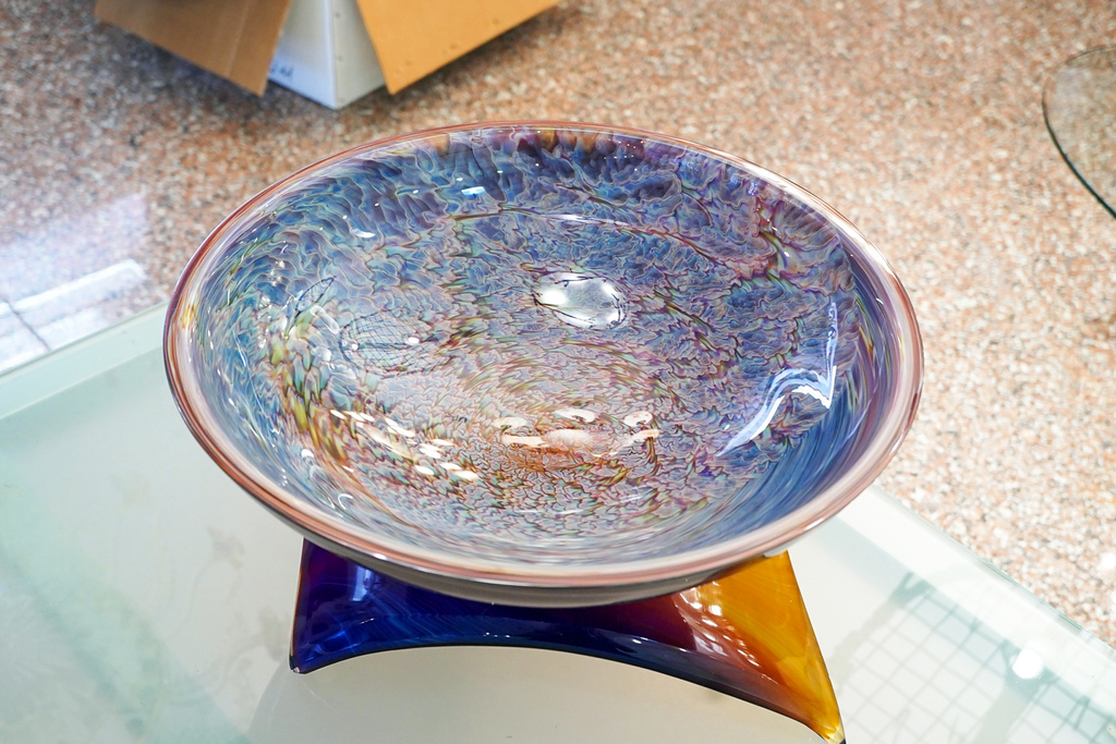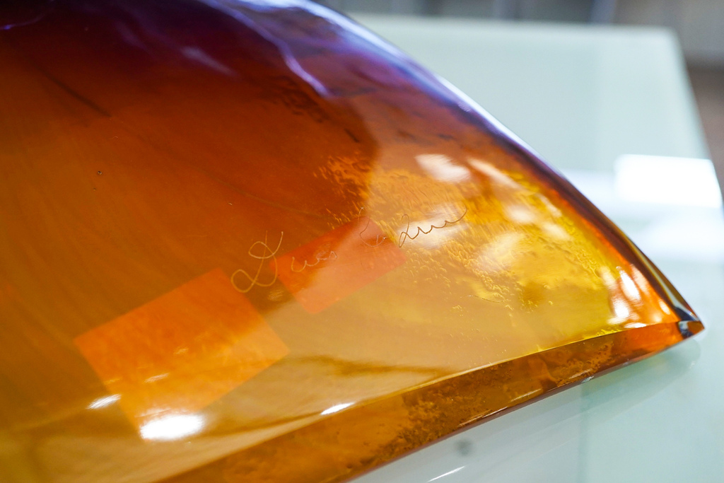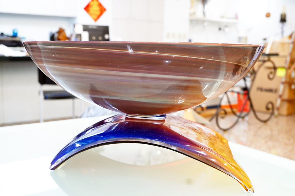 ▼底座上有大師Dino Rosin的簽名,老闆順便科普混彩水晶最早存在於義大利15世紀,失傳500年直到1977年Rosin家族找回配方,才能重現這夢幻瑰麗的混彩水晶